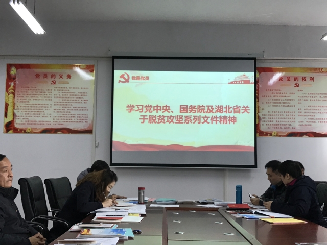 会议开始,教师第二支部党员熊冰老师,为全体党员诵读《中国共产党章程》第九章和第十章。随后全体党员开展集中学习,党总支副书记镇方松带领全体党员集中学习党中央、国务院及湖北省关于脱贫攻坚系列文件精神。会上镇方松传达了中央第二巡视组对湖北省开展脱贫攻坚巡视工作动员会精神以及中共湖北省委、湖北省人民政府《关于全面深化新时代教师队伍建设改革的实施意见》。