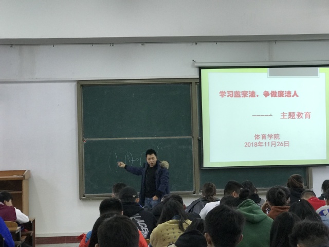 本网讯 为了落实党规党纪和国家监察教育“十进十建”活动,实现校园普法普纪教育,营造校园廉洁文化氛围,11月26日下午体育学院组织全院学生党员、入党积极分子召开党规党纪和国家监察法宣传教育主题班会。本次教育以“学监察法 做廉洁人”为主题,党总支副书记镇方松出席会议,学生党支部书记李祖平主持会议。