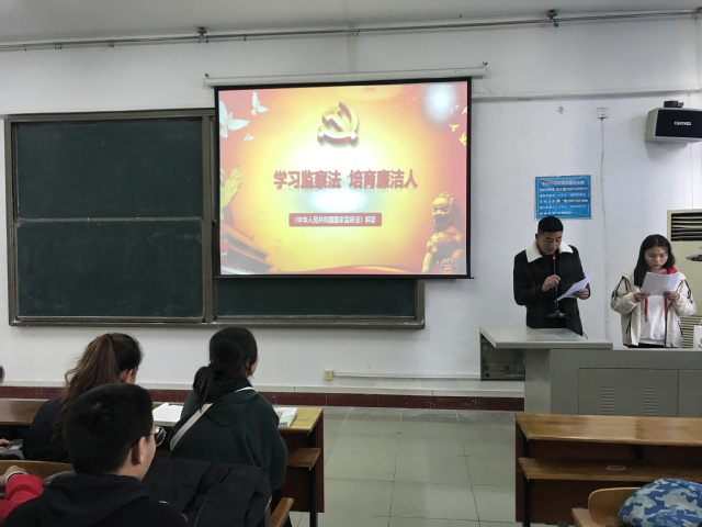 首先镇方松带领全体同学一起选读了《中国共产党党章》、《中华人民共和国监察法》部分内容,通过选读使同学们对《党章》和《监察法》的印象更加深刻;李祖平老师与同学亲切互动,以鲜活的案例与同学们共同分享了党的性质和宗旨、国家监察机关及其职责等内容。会王林同学进行了专题演讲,同学们根据班会内容展开了讨论。