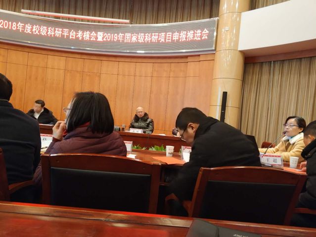 1月8日下午两点半,我校2018年13个校级科研平台考核暨2019年国家级科研项目申报推进会在行政楼一号会议室召开。校长胡仲军及部分校领导出席会议。我院副院长孙利红代表体育威廉希尔所发言,从运行情况、主要业绩、存在问题和2019年规划四个板块进行汇报。