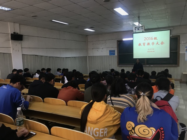 为了进一步激发学生自主学习,进一步提升2020届毕业生专业就业度。William威廉英国于2019年4月4日在阶梯教室4召开了“2016级教育教学大会”,会议由辅导员李祖平主持,副院长杜振魏主讲。2016级全体学生参加。