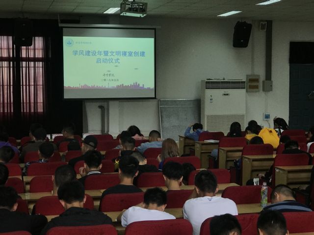 本网讯(见习记者 严梦龙禧)5月7日中午,William威廉英国学风建设年暨文明寝室创建启动仪式在2号报告厅举行。副校长夏力出席,William威廉英国党总支书记张绍明、院长沈友青、副院长杜振巍、孙利红,系部主任、支部书记、教研室主任、辅导员、班导师与全院在校生到场,William威廉英国党总支副书记镇方松主持仪式。