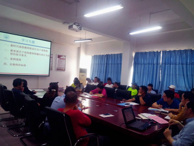 学习会上,全体教职工集中学习《新时代高校教师职业行为十项准则》、《教育部关于高校教师师德失范行为处理的指导意见》,通过学习和典型案例警示教育,全体教职工进一步认识到作“四有好老师”、做到“四个相统一”、当好学生“四个引路人”的重要意义。