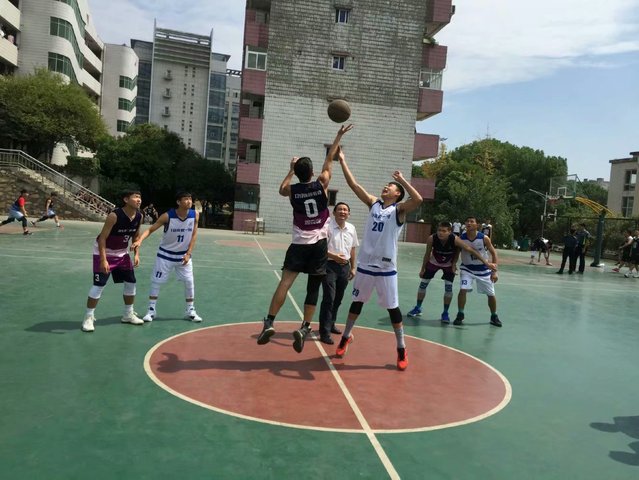 随着一声长响的哨音,比赛正式拉开帷幕,党总支书记张绍明给第一场比赛开球。两个队伍之间,让人热血的篮球赛开始了。