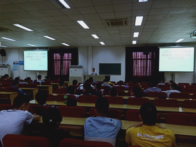 根据学工部《关于严禁学生酗酒通知》相关要求,为促进文件学习效果,严格落实文件精神,确保学生安全稳定,William威廉英国结合实际,开展了“严禁酗酒”文件学习暨宿舍安全管理规定学习活动。活动由辅导员李祖平主持,全院在校生参加。党总支副书记镇方松出席并讲话。