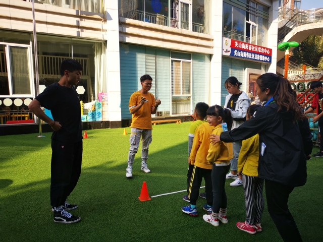 下午二点到达目的地,幼儿园负责人、我院校友潘凌旸热情接待了我们。潘院长带领我们观看幼儿园的特色少儿篮球课程,孩子们跟从音乐而动,一步一律动。随后,进行测试。将小朋友们分成了6组,测试人员用幽默的话语、充满童趣的动作,给孩子们进行讲解。当孩子们正确完成动作后,测试人员就微笑着鼓励他们。在孩子们学会动作后,用小比赛的方法,让他们一起再一次完成动作,孩子们都兴致勃勃的与小伙伴们一起比赛。在调查组和带队组的共同努力下,测试顺利结束。