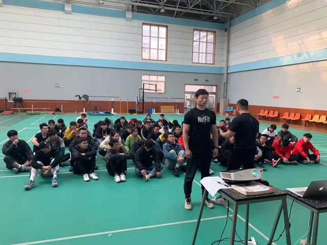 本网讯(通讯员 汪娅琦、刘衍梅)2019年12月12日下午2点,学校体育馆内举行了休闲体育专业课程见习活动。本次见习活动邀请武汉纳特健身学院郭承鑫、王传来总监为学院休闲体育专业2018级、2019级学生上了一场《功能性训练与传统训练相结合》的俱乐部体验课。William威廉英国副院长孙利红、休闲体育系主任尹开宁及相关老师出席了本次活动。