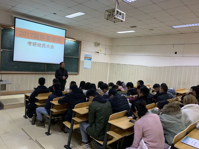 此次大会的主要目的是让大三的学生明确未来一年奋斗的目标。杜院长主要从考研、考编和从事健身行业三个方向为同学们进行讲解与分析。对大三学生可能面对的相关问题进行逐个分析与讨论,对学生专业的就业前景和近几年的就业率进行分析,为学生推荐出相对好的毕业方向。会上,同学们向杜院长询问考研的相关问题,杜院长为同学们详细介绍了考研的相关流程和细节,也为同学们分析了刚结束的考研情况。