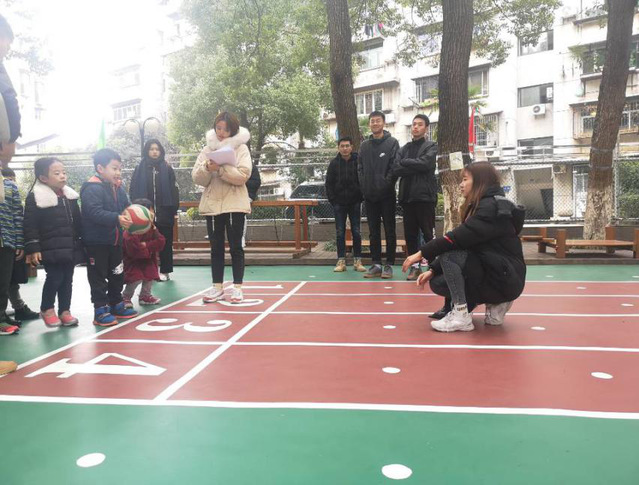 2019年12月30日上午,2018级体育教育1班在奥林幼儿园进行5岁幼儿大肌肉及动作技能发展的实验。实验项目包括:原地运球、双手接球、地滚球、脚踢球、击固定球、肩上掷球、立定跳远、单脚跳、侧滑步、前滑步、前跨跳以及跑等项目测试。