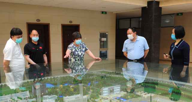 仪式结束后,张国秀、夏力、胡兴等陪同胡功民一行现场考察了我校风雨操场及运动场等基础设施建设情况。