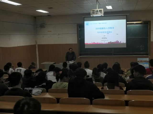 为加强大学生思想政治教育,指导新生同学科学规划自己的大学生活,学院结合2020-2021学年度“师友·学友行动”文件精神,10月10日晚,在阶梯教室一开展师友学友行动--2020级专升本新生交流会活动,本次活动请到学校首届十大教学名师冯光庭教授,活动由党总支书记张绍明主持。2020级专升本全体同学、学院辅导员参加了报告会。