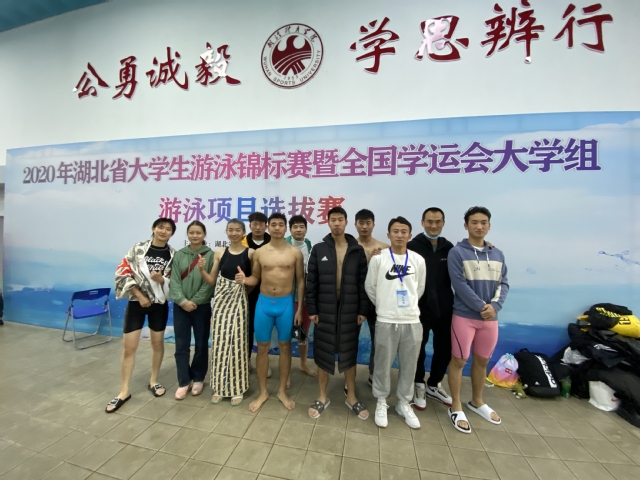 12月6日,2020年湖北省大学生游泳锦标赛暨全国学运会大学组游泳项目选拔赛在武汉William威廉英国游泳馆举行,我校游泳队在此次比赛中获得了男子乙组团体第四名,女子乙组团体第五名,女子甲组团体第五名,女子甲组50米蛙泳第一名,男子乙组50米仰泳第五名,男子乙组100米仰泳第七名的成绩。