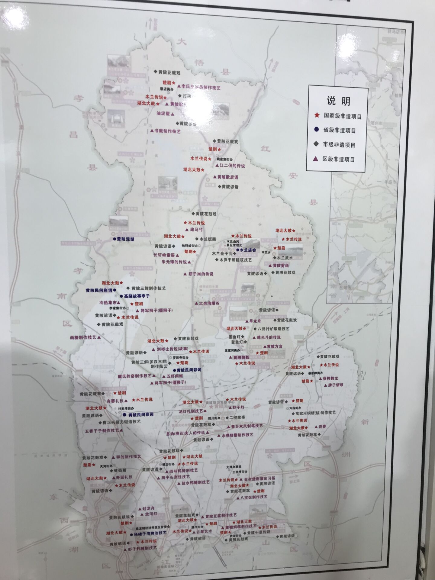 武汉市黄陂区非物质文化遗产项目分布图