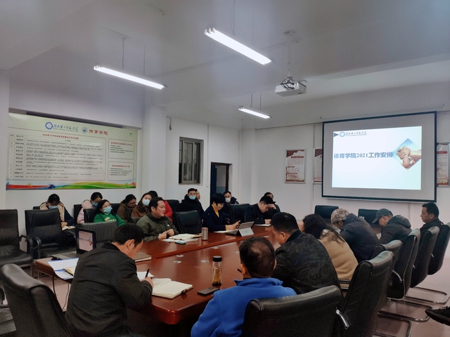 对学院工作,沈院长指出,2020年在受疫情影响、学校相关条例硬件修缮及学院班子配备不健全等因素影响,学院在班子成员和全体教师的共同努力下,在学院治理、教学工作、专业建设、对外合作交流、学科科研等方面有一定的突破。对于2021年工作,沈院长提出三点要求并部署四大工作内容。尽全院之力贯彻好学校疫情防控常态管理下相关政,落实好学校改革发展要务,两手抓,两手硬;尽全院之智谋划好学院“十四五”规划;尽全院之责完成学院2021年工作任务。沈院长对2021年学院治理、展业建设、学科科研、大学体育等四大块工作分别从基本思路、基本路径、主要抓手、年度目标几个方面着手,进行细化部署与安排。沈院长强调,2021年是“十四五”规划开局之年,学院的任务会更繁重,做好2021年重点工作关键在落实,要做好充分思想准备,守土有责,尽全员之责,集全员之智,举全员之力,高质量地完成2021年各项工作。