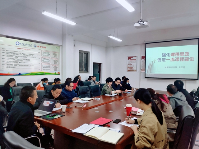 本网讯(通讯员 向琴英)4月1日下午,我院特邀请教育科学院书记乐三明在会议室作题为“强化课程思政,促进一流课程建设”的课程思政专题讲座。学院书记张绍明主持会议,全体教职工参加会议。
