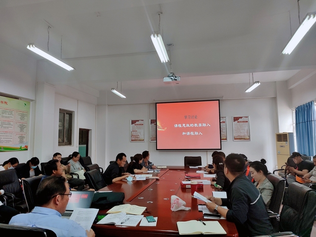 全体党员学习讨论,休闲体育系教研室主任蒋志伟以体育技术课及理论课为案例,分享如何将课程思政融入教案和课程,引导学生在体育课程中习得拼搏、奋斗、积极向上、不畏困难等核心素养。