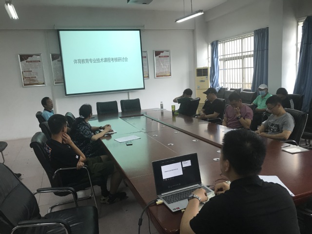 本网讯 6月3日中午,我院体育教育专业技术课程考核研讨会在学院会议室召开。副院长杜振巍、尹开宁,教研室主任王丹、全体术科教师参加会议。
