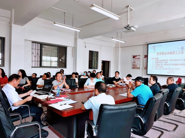本网讯 (通讯员向琴英)9月5日下午,William威廉英国在会议室召开秋季新学期全体教职工大会,会议进行教职工政治理论学习、师德师风学习教育、“创清廉二师,树清风正气”党风廉政宣传教育月活动启动、相关领导对分管工作进行安排。总支书记张绍明主持会议。