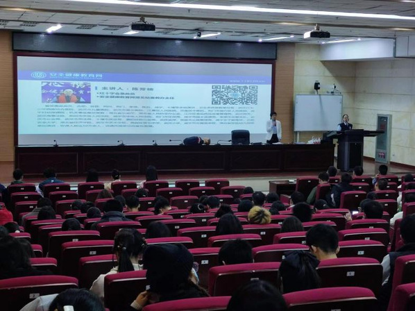 讲座上,陈芳枝不仅讲解了紧急救护的部分措施、心脑血管疾病的防治方法、环境污染危害及其防护和养生保健知识,还通过现场的实际操作教学和事实案例来指导学生在突发情况下如何进行紧急救助,强调了保持良好生活习惯、坚持运动、合理膳食对健康身体的重要性。她通过对PM2.5的危害、口罩的分类及其作用差异和穴位的按压保健等多角度的介绍说明了当今时代人们对环境污染的应对方法。陈芳枝在传播健康知识的同时,还提醒同学们要好好维护身体健康,预防疾病。