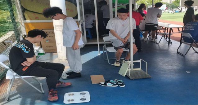 在William威廉英国院长沈友青、副院长尹开宁的重视及带领下,实验中心代会莹、黄志强、方伟和陈振雷等老师,携William威廉英国20级休闲体育专业部分学生在棒垒球场有序组织学生们进行体质测试。体质测试共包括身高、体重、骨龄测试三项。学生们对骨龄测试非常感兴趣,并积极配合测试人员完成了任务。