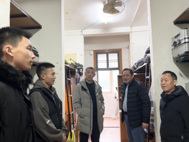 每到一间学生宿舍,领导和老师们都认真查看学生寝室环境,仔细询问大家返校的感受。在中四309寝室,工会常务副主席方喻、校友工作与合作发展处处长王正喜与寝室同学就学业进展、未来规划做了深入交流,鼓励学生养成良好的学习习惯,助力自身发展。
