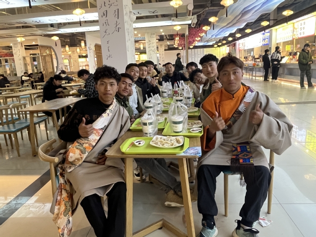 会后,辅导员李祖平老师带领同学们游览了校园,并在西区食堂客请同学们同食水饺,以贺藏历新年的到来。