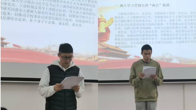袁宇飞领学《习近平:在第十四届全国人民代表大会第一次会议上的讲话》、《习近平:扎实抓好主题教育 为奋进新征程凝心聚力》,谭淳领学《习近平:关于在全党大兴调查研究的工作方案》。何思琪组织全体党员学习了《习近平:牢牢把握高质量发展这个首要任务》《国家安全法》、《省纪委监委通报 6 起违规吃喝风腐一体典型案例、酒驾醉驾警示案例》等内容。