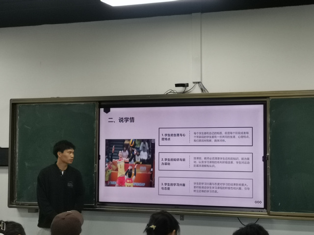 本网讯 为了全面提高20级体育教育专业师范生教师职业技能之一的说课能力,在体育教育专业教研室王丹老师的指导下,经过为期两周的训练,共安排了熟悉说课----撰写教案和说课稿----个人说课练习----小组说课----说课比赛等5个环节的演练, 对20年级学生的说课能力进行了训练。