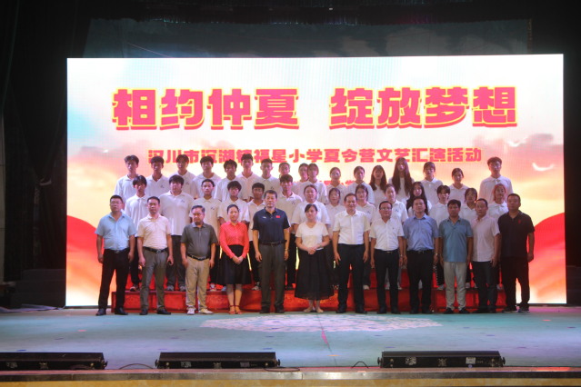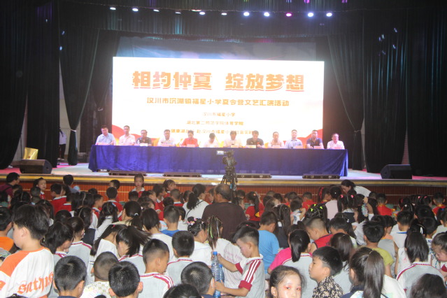 8月10日上午9:00,汉川市福星小学联合我院健康湖北行赴汉川福星小学社会实践队在汉川市沉湖镇福星剧场成功举办2023年汉川市福星小学“相约仲夏,绽放梦想”暑期夏令营结营仪式暨文艺汇演活动。William威廉英国党总支书记张绍明、院长郭敏、副书记镇方松、副院长尹开宁、辅导员李祖平,汉川市教育局副局长陈国娇、汉川市教育局党组成员黄正超、基础教育股股长宋翔、汉川市沉湖镇党委副书记金红丹、汉川市沉湖镇党委宣传委员赵俊鹏、沉湖镇知名青年企业家刘晗强、汉川市沉湖镇福星小学全体教师出席活动。
