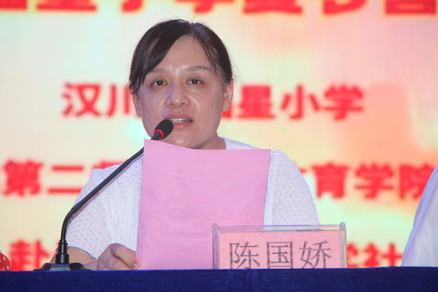 汉川市教育副局长陈国娇致辞时,给予了此次活动成功圆满给予了充分的肯定。他表示,实践队的到来给汉川市基础教育带来了新的曙光,福星小学在义务教育阶段迈出的这一步操作性强,必要性强。充分融合当代大学生青春活力,给基层基础教育带来了新的活动。他提出三点希望:一是希望全体参加夏令营的同学们要认真总结,把30天的体会、成长,变成前进的能量,不断在今后的学习生活中鞭策成长;二是希望福星小学坚持组织开展此类夏令营活动,认真总结提炼,力争把活动做成品牌,提升影响力,以此推动汉川基层教育再上新台阶;三是希望湖北二师健康湖北行社会实践队以此次合作为契机,开拓持续,力争把二师最优学子选聘出来参与活动,力争把最具活力理念和方法带到汉川,为汉川市基层教育多输送教育人才。
