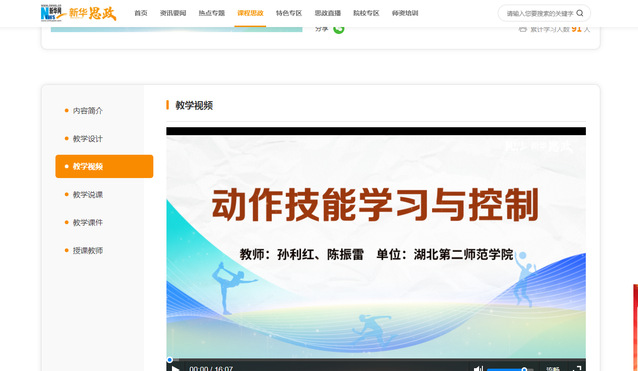 本网讯 (通讯员向琴英)由我院孙利红教授、陈振雷教师主讲《动作技能学习与控制》入选新华网课程思政案例库。