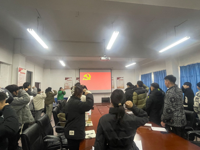 本次活动由学生党支部书记何思琪主持。学生党员漆良伟带领全体党员重温入党誓词,组织委员李颖诵读党章并组织全体党员交纳党费。
