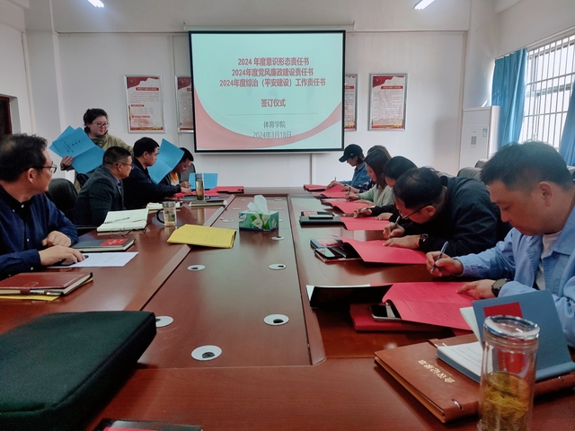 郭敏院长对学院最新干部任命进行通报,并寄语他们讲奉献、履职尽责,尽快适应角色,服务学院。随后,学院全体中层干部签订意识形态、党风廉政建设及平安建设责任书。
