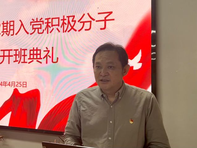 党总支书记张绍明讲话。张书记对参加本次党课学习的同志表示欢迎和祝贺,同时也针对本次培训提出三点要求:一要端正态度,正确认识参加入党积极分子培训的重要意义;二要明确目标,努力提高入党积极分子培训学习效果;三要严格要求,圆满完成本次培训学习任务,希望大家能够通过这次培训在思想认识上获得丰收、在政治素养上有所提升,早日加入到党组织中来。