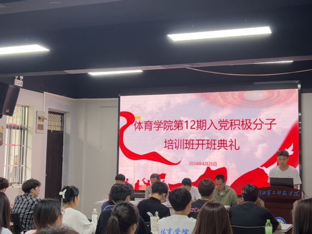 会议在奏唱《国歌》中拉开序幕。我院2023级体育教育1班高海洋作为学员代表发言。学生党支部书记何思琪宣读了《第296期入党积极分子培训班管理规定》。