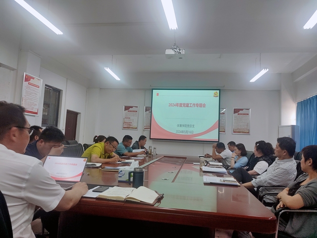 本网讯 (通讯员 向琴英) 5月17日,我院在会议室召开2024年度党建工作专题会议,会议由学院党总支书记张绍明主持,学院班子成员、三办主任、各系部主任、专业负责人、支部书记及支委参加会议。