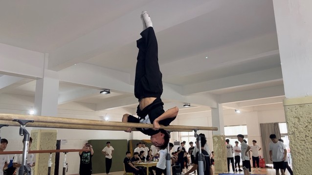 此次体操期末技术考试共分为四个部分,分别是单杠、双杠、跳马技术和自由操自编自成套动作。