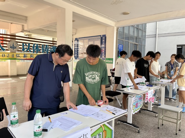 随后,校领导一行深入迎新一线,与忙碌在岗位上的迎新工作人员亲切交谈,对他们的辛勤付出表示高度赞扬和衷心感谢。校领导强调,迎新工作是展示学校形象、传递校园文化的重要窗口,每一位参与其中的师生都应以饱满的热情和细致的服务,让新生感受到家的温暖和学校的关怀。