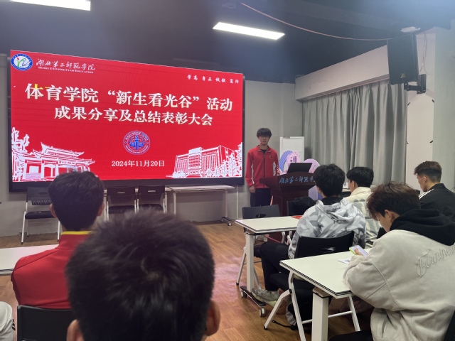 随后,新生代表吕东阳分享了自己参加“新生看光谷”活动的成果。他表示,走进企业让他感受到了光谷区域体育事业的发展势头正好;走进中小学让他感受到了高新区教师教育共同体大中小学体育一体化推进走深走实;走进公安事业让他感受到了专业就业面的主渠道和拓宽面;走进社区让他感受到了社区居民对体育健康知识和理论的渴望。自己参与此次活动,收获颇丰。改变了自己对专业认知的局限,打开了自我规划大学生涯的新局面。自己和同学们一定会立足专业,努力学好本领。在最美丽的光谷,在最美丽的时代,成长最美丽的自己。