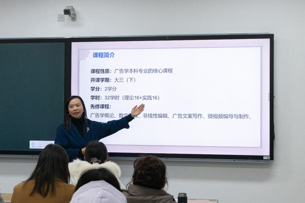 新闻与传播学院胡亚婷老师讲授《影视广告创意与制作》,从广告代言人概念、影视广告名人代言、影视广告虚拟形象代言阐释“影视广告形象代言”的主题,以国风虚拟数字人翎Ling和天妤为例,启发学生思考影视广告虚拟形象代言如何助力中国古典美学传播。