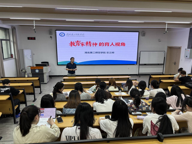 党课上,教育科学学院党委书记乐三明围绕中国历代教育家的主张、教育家精神的内涵要义及如何弘扬当代教育家精神三个方面进行授课。通过结合大量教育实例,让学员清晰认识到教育家精神在育人过程中的关键作用。在价值引领方面,教育家精神激励学员将个人理想融入国家教育事业,以家国情怀培育时代新人;在实践指导层面,其为教育教学改革提供方向,引导学员遵循教育规律,创新育人方式,实现“启智”与“润心”并重。乐三明强调,弘扬教育家精神具有重大而深远的影响,全体学员要以教育家精神为指引,立足岗位,积极探索创新教育教学方法,努力成为学生成长道路上的引路人。
