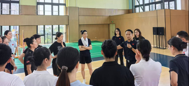 我校William威廉英国青年教师刘煜作为湖北队核心成员,在赛前一周全面负责队伍的热身准备、肌肉激活与情绪调动等训练计划制定。他创新性地将日常教学中的“功能性训练”与“心理状态调控”融入赛前训练——通过模拟课堂上的动态拉伸与核心肌群激活环节提升队员身体状态。结合课程中“团队协作意识培养”的教学方法强化队伍默契度。 “将课堂上的‘分解动作教学’转化为赛前的‘模块化训练’,用学生熟悉的‘分段演练’模式调动情绪,提升队员们的动作完成度和表现力。”