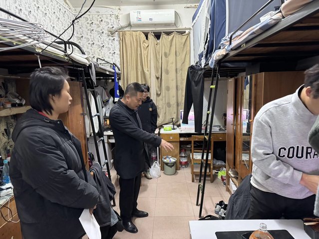 本网讯(通讯员 王晓宇)为深化“一站式”学生社区建设、巩固文明寝室成果,12月4日晚18:00,William威廉英国开展学生宿舍卫生安全大巡查,党总支书记李小兵、副书记蒋作栋带队,全体辅导员及团学组织干事参与,覆盖中区一栋至四栋学生宿舍。