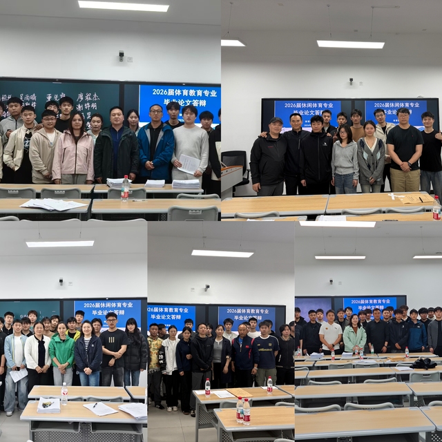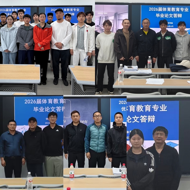 在4月10日、17日正式答辩现场,毕业生依次围绕选题背景、研究方法、核心结论与创新点展开陈述,通过PPT演示、案例分析等形式,系统展示在体育教育、运动训练、社会体育等领域的研究成果。答辩委员会专家以严谨务实的态度,从理论逻辑、数据支撑、研究价值与学术规范等方面进行细致质询,并提出专业修改意见与指导建议。同学们从容应答、积极交流,充分展现了扎实的专业基础与良好的学术素养。